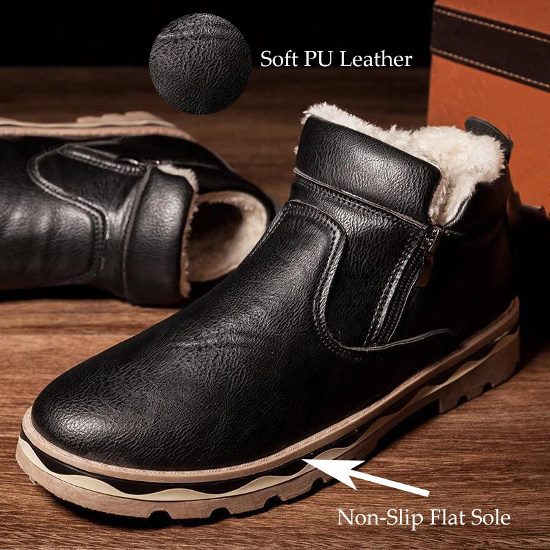Men Leather Ankle Boots Casual Lace Up Fleeces Warm Boots Fashion Waterproof Flats Outdoor Winter Shoes British Style Plus Size
