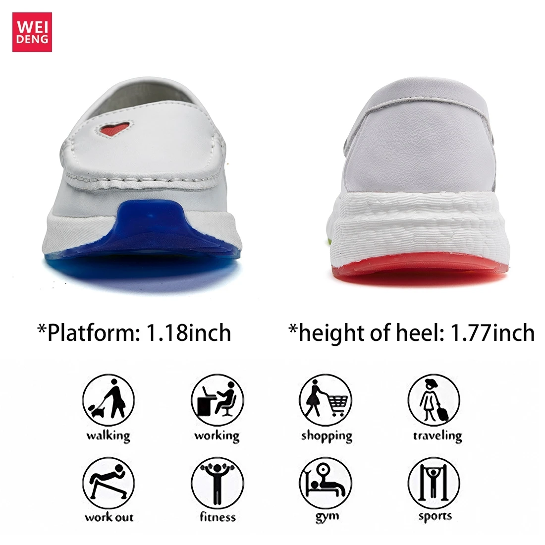 Weideng Women Loving Nurse Casual Shoes Genuine Leather Leisure Female Loafers Slip On Soft Light Platform Height Increasing 4cm